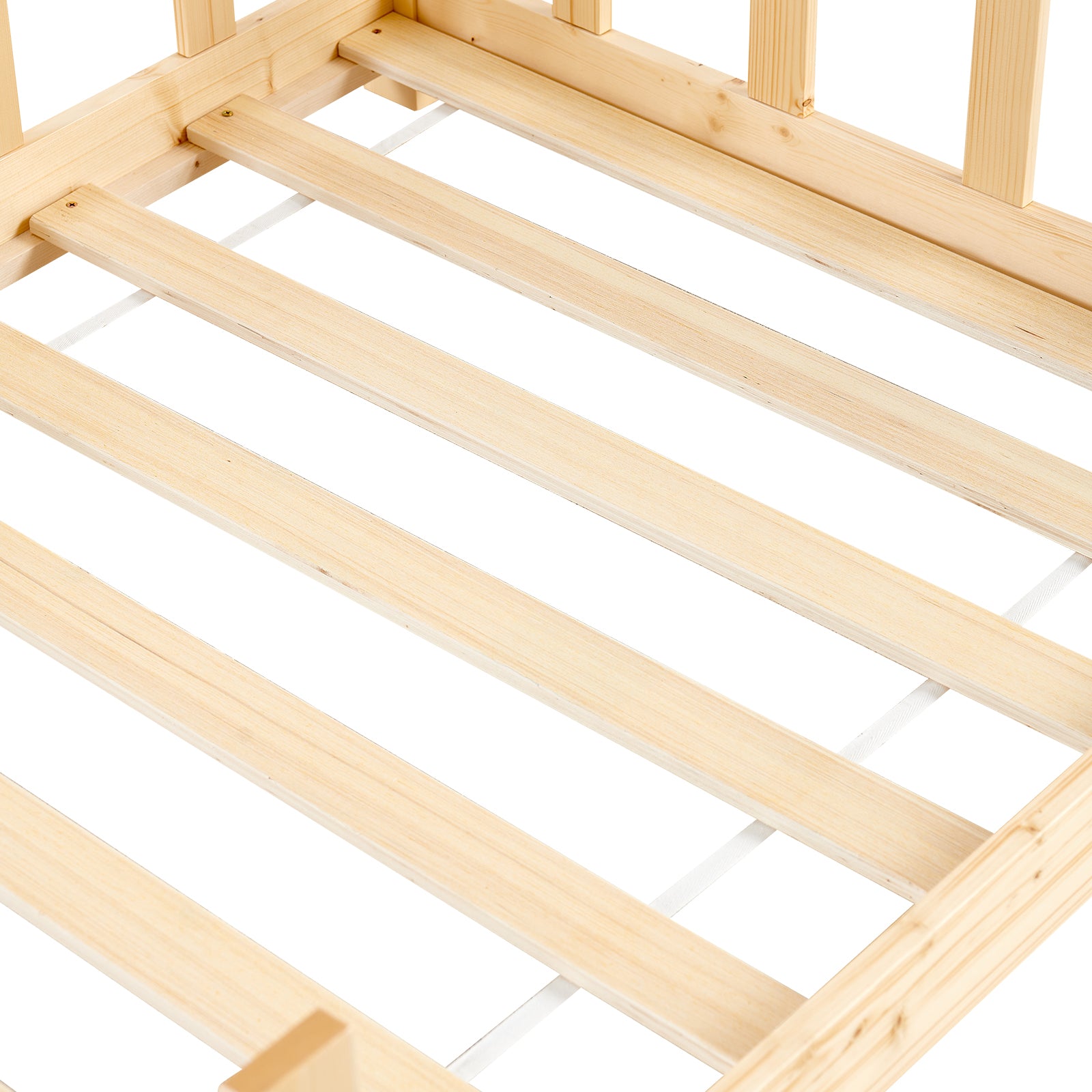 - Kreatives Design: Die Oberseite des Bettes hat die Form eines Daches, wie ein kleines „Zuhause“, das Kindern ein warmes und sicheres Gefühl gibt und ihnen auch einen exklusiven Spielraum bietet.