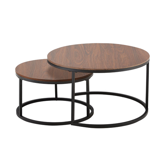 CARB 2er Set Couchtische aus Eisenrahmen - Eiche Φ80 * 45cm / Φ60 * 35cm - Hellbraun