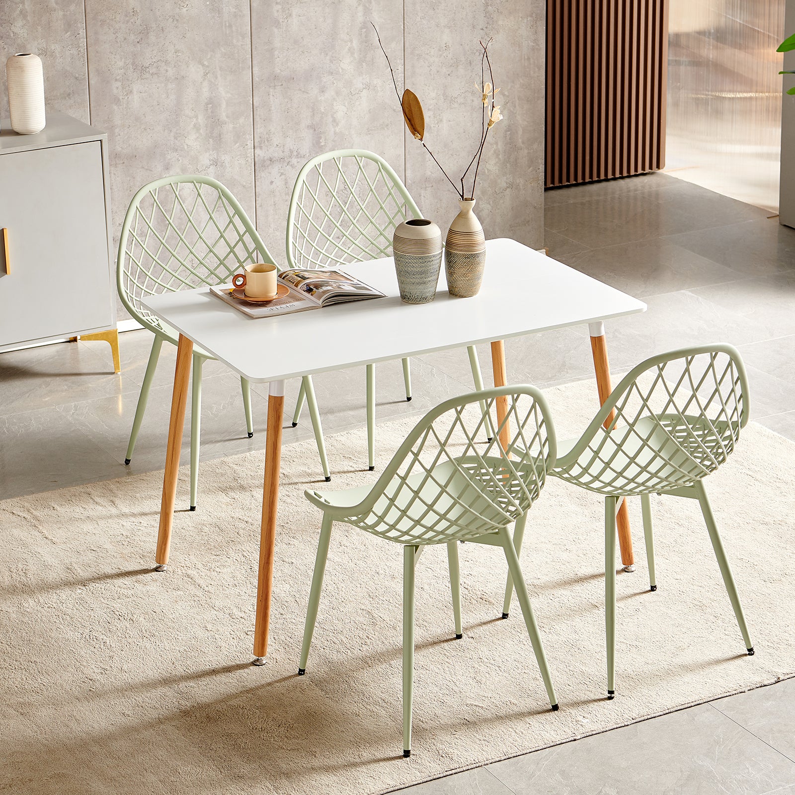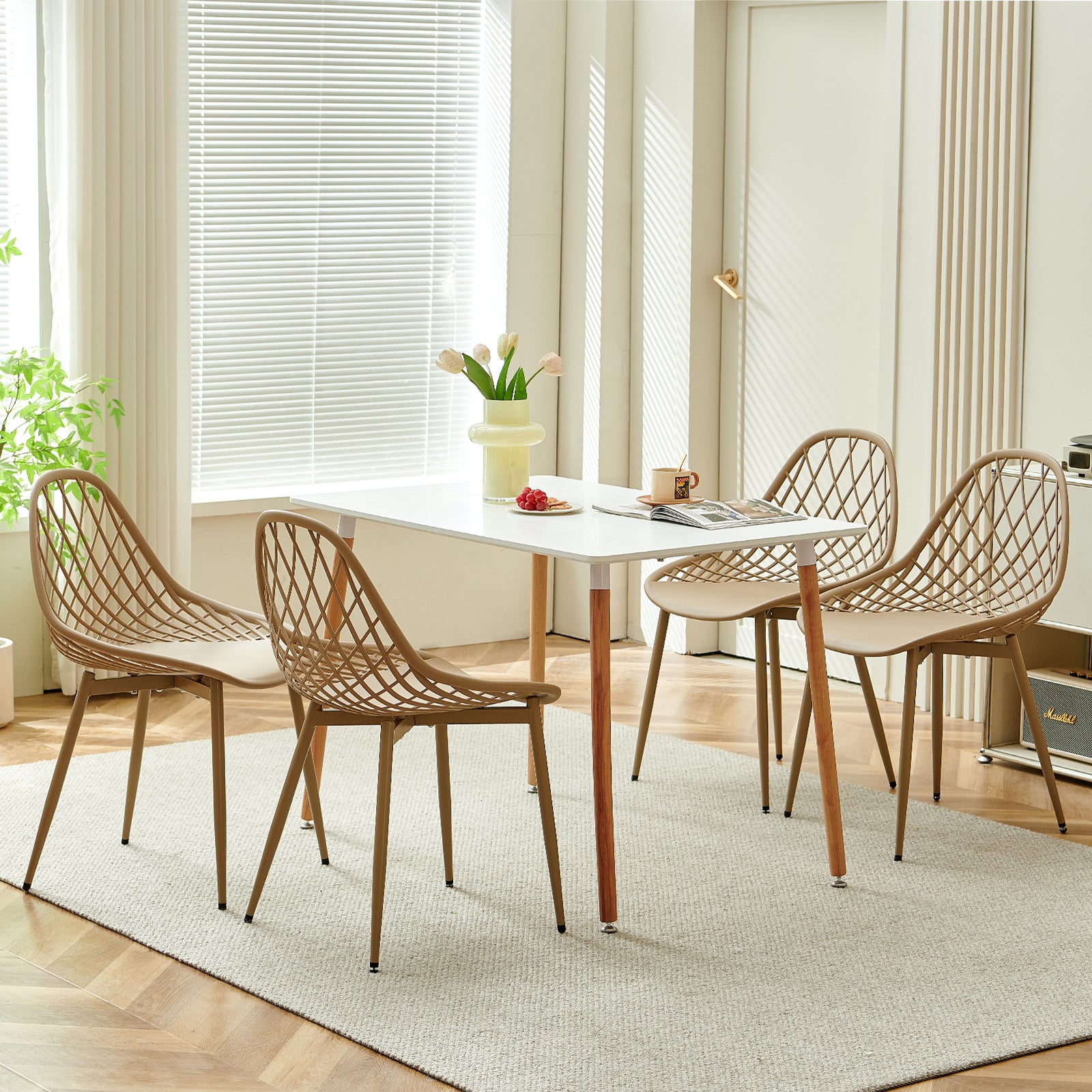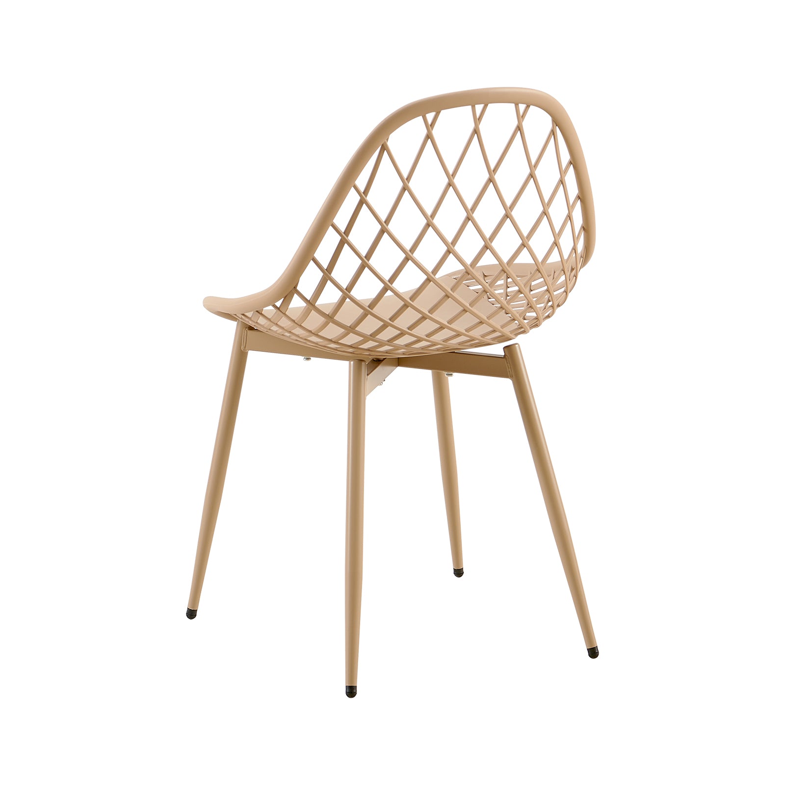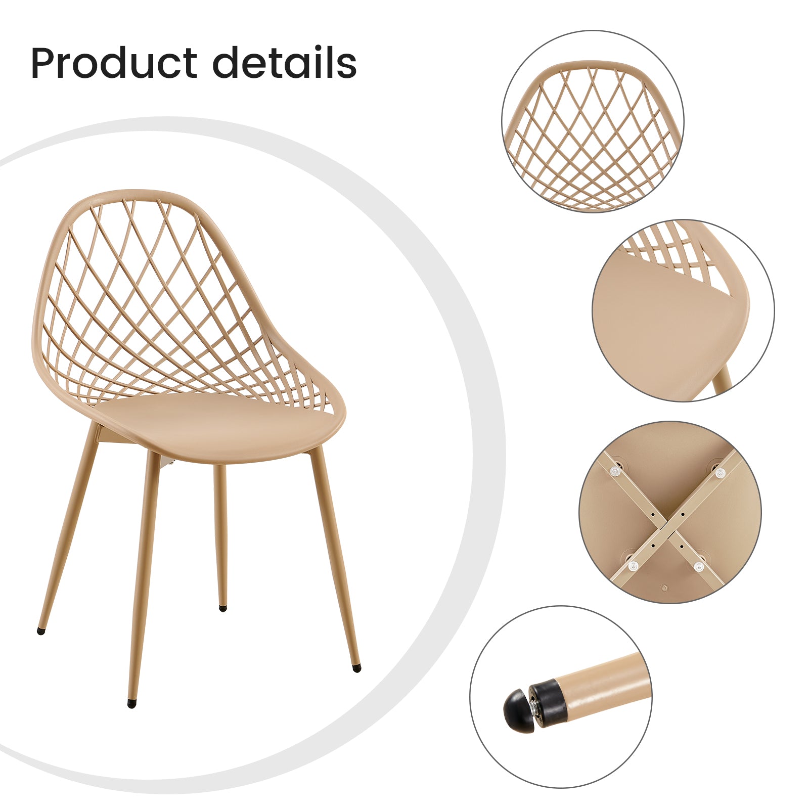 Die Rückenlehne dieses Esszimmerstuhls weist ein einzigartiges Hohldesign auf, das nicht nur den künstlerischen Gesamteindruck verstärkt, sondern auch die Atmungsaktivität effektiv verbessert, sodass Sie sich beim Sitzen wohler fühlen. Das robuste Design der Eisenbeine bietet nicht nur stabilen Halt, sondern verleiht dem Esszimmerstuhl auch eine moderne Schönheit im Industriestil. Dieser Esszimmerstuhl eignet sich für verschiedene Szenen und wird zum Highlight Ihrer Heimdekoration.