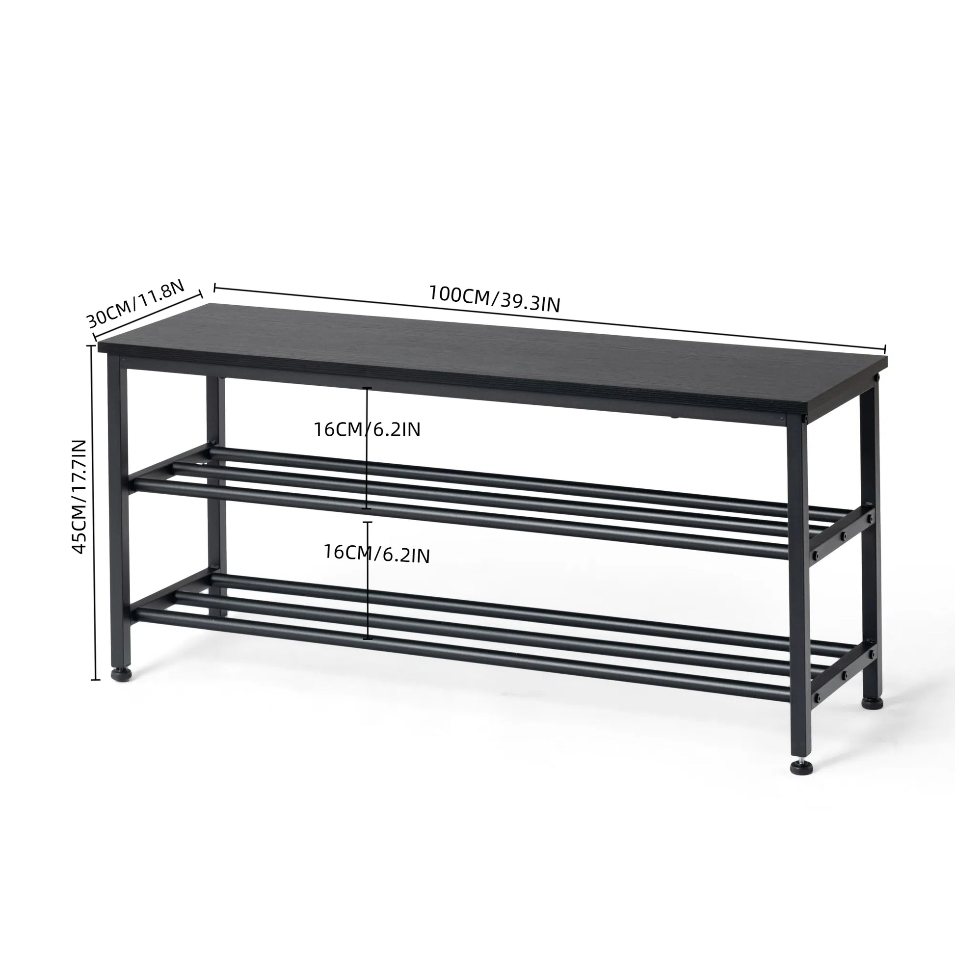 Mit den Maßen 100 x 30 x 45 cm bietet dieses Schuhregal die perfekte Balance aus Kompaktheit und Geräumigkeit. Dank seiner Größe passt es bequem in kleinere Räume und bietet dennoch ausreichend Stauraum für mehrere Paar Schuhe. Das macht es zur idealen Wahl für Wohnungen, Studentenwohnheime oder Eingangsbereiche, in denen wenig Platz ist, aber Ordnung unerlässlich ist.