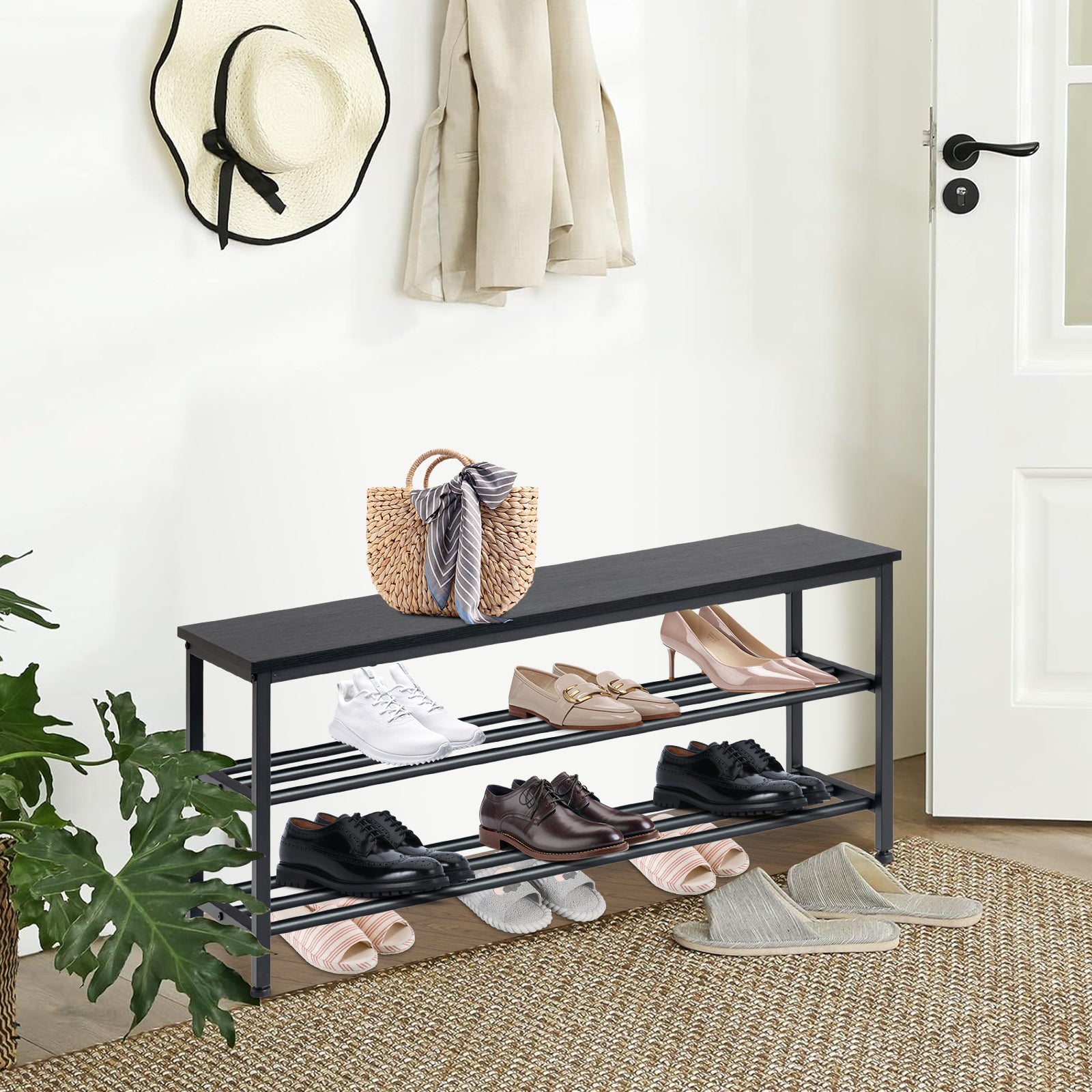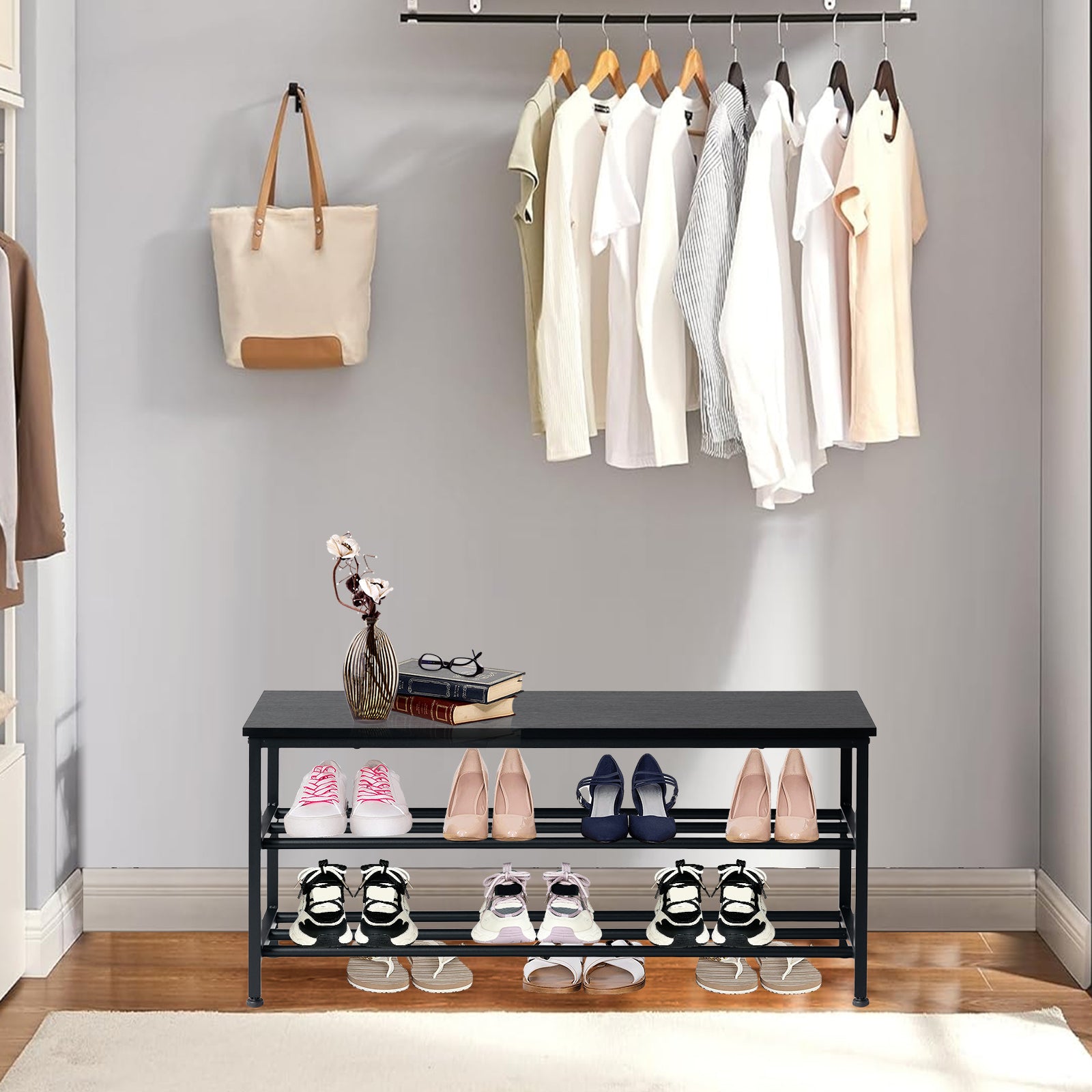 Praktisch und einfach: Mit seiner dreistufigen Struktur bietet dieses Schuhregal viel Platz für die Aufbewahrung und Organisation verschiedener Schuhe wie Sneakers, Abendschuhe und High Heels und sorgt für Ordnung und Übersichtlichkeit.