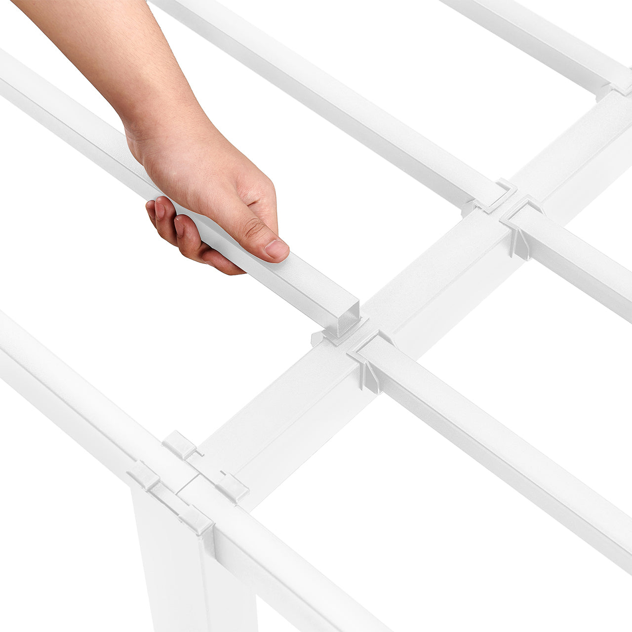 Einfache Montage: Dem Bettrahmen liegt eine detaillierte Montageanleitung bei. Hinweis: Ziehen Sie die Schrauben beim Zusammenbau nicht vollständig an. Ziehen Sie sie nur zu etwa 70 % an, um die Anpassung zu erleichtern, während Sie alle Schrauben an den richtigen Stellen positionieren. Sobald alle Schrauben richtig sitzen, können Sie sie für eine perfekte Passform festziehen.