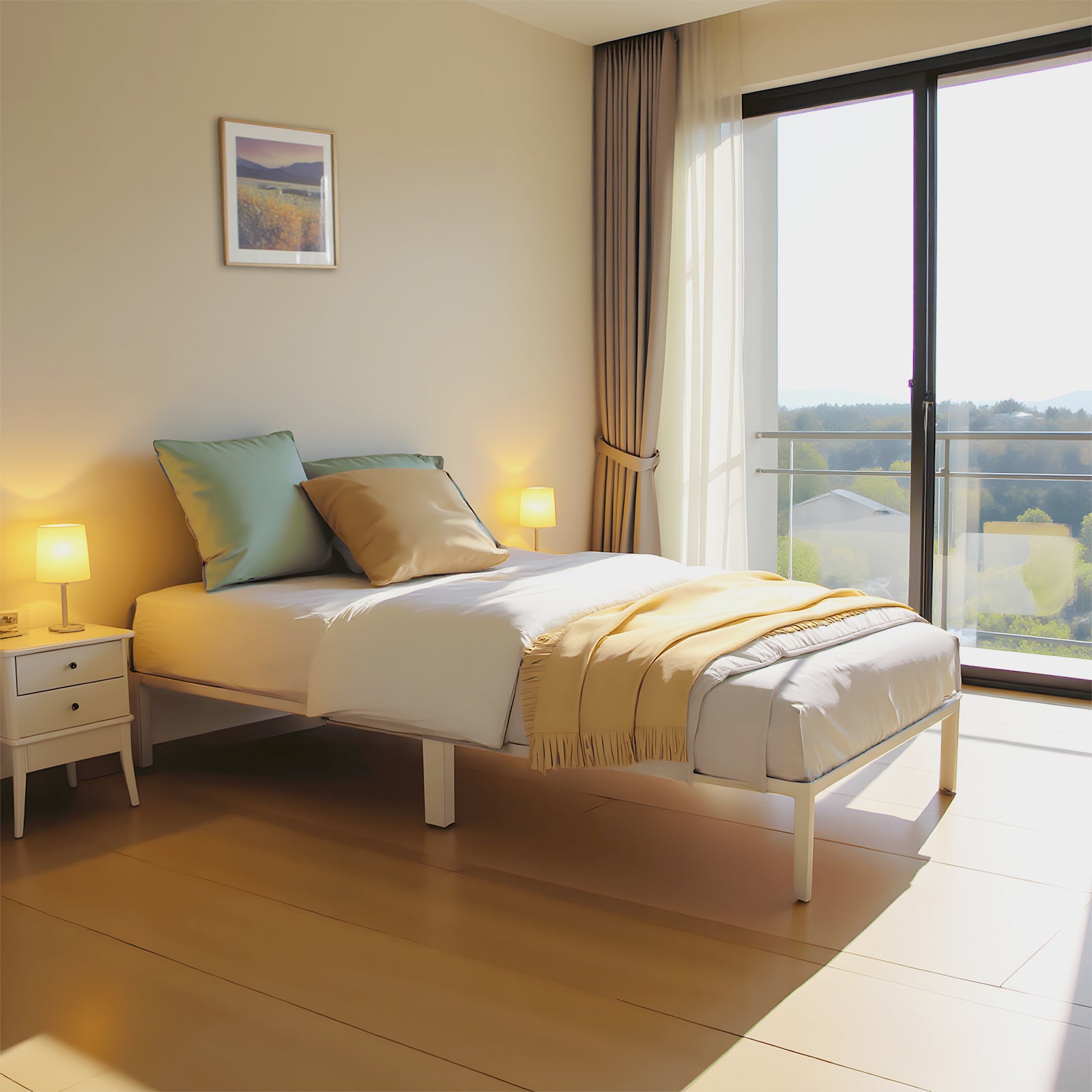 Ob im Schlafzimmer, Gästezimmer oder Schlafsaal – dieses kopflose Eisenbettgestell verleiht Ihrem Wohnraum mühelos einen dezenten Charme und bewahrt gleichzeitig eine klare, aufgeräumte Ästhetik.