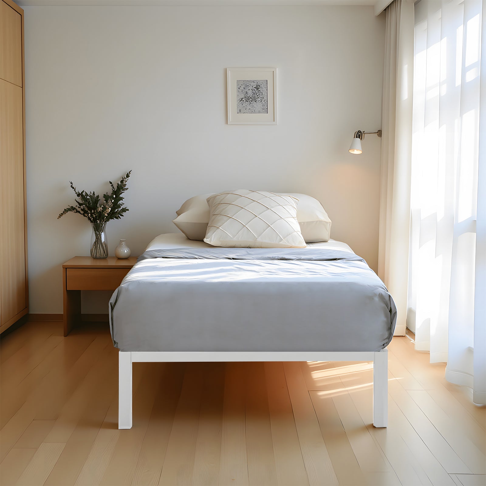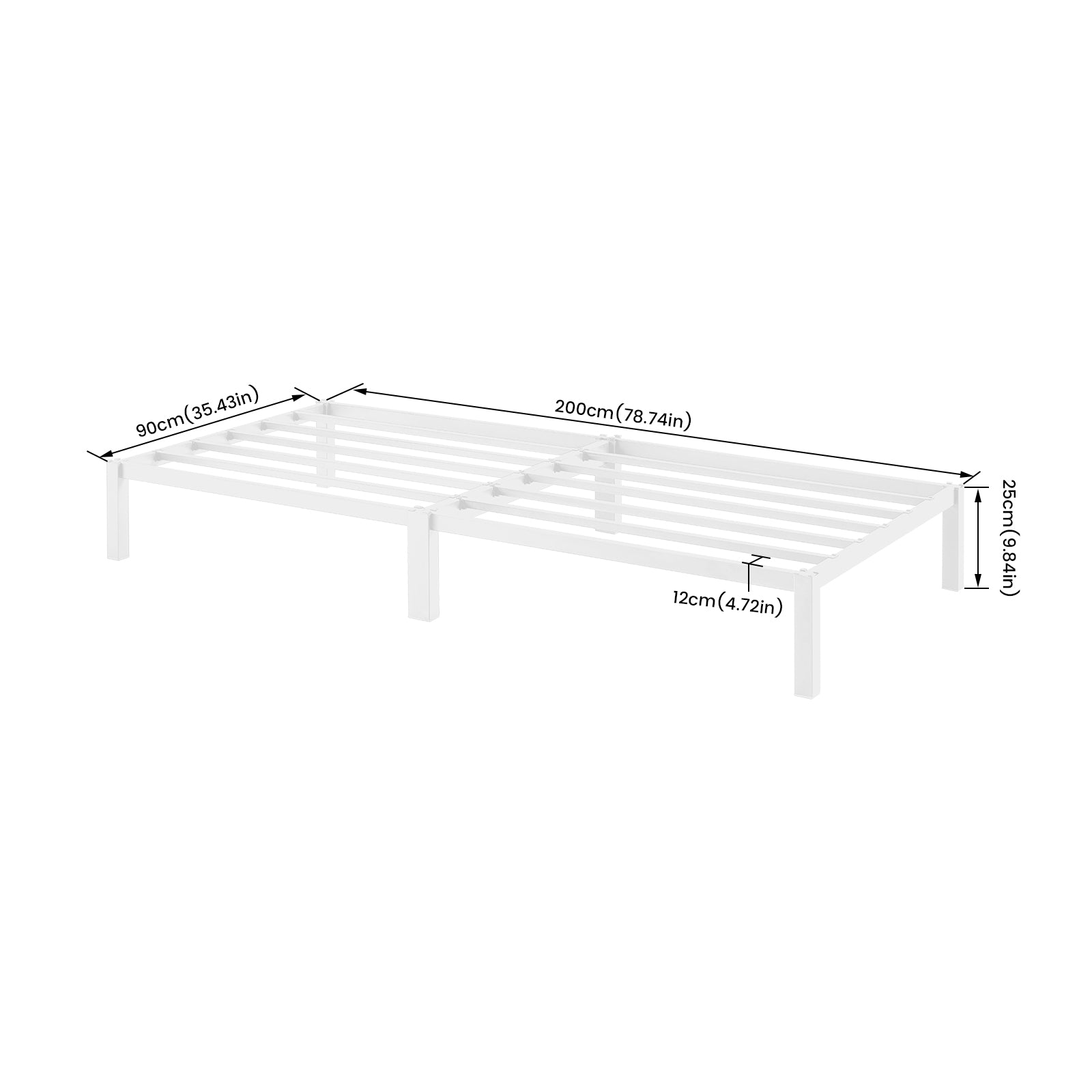 Dieses schlichte und minimalistische Einzelbettgestell aus Eisen vereint Funktionalität mit Eleganz und ist die perfekte Ergänzung für jedes Schlafzimmer. Das aus hochwertigem Eisen gefertigte Bettgestell ist robust und langlebig. Die sorgfältige Rostschutzbehandlung sorgt dafür, dass es auch nach längerem Gebrauch in ausgezeichnetem Zustand bleibt. Dank des durchdachten Designs beträgt der Abstand zwischen Boden und Bettgestell 25 cm und bietet ausreichend Platz für kleine Gegenstände. Die klassische weiße Oberfläche verleiht Ihrem Raum einen Hauch von Schlichtheit und Helligkeit.
