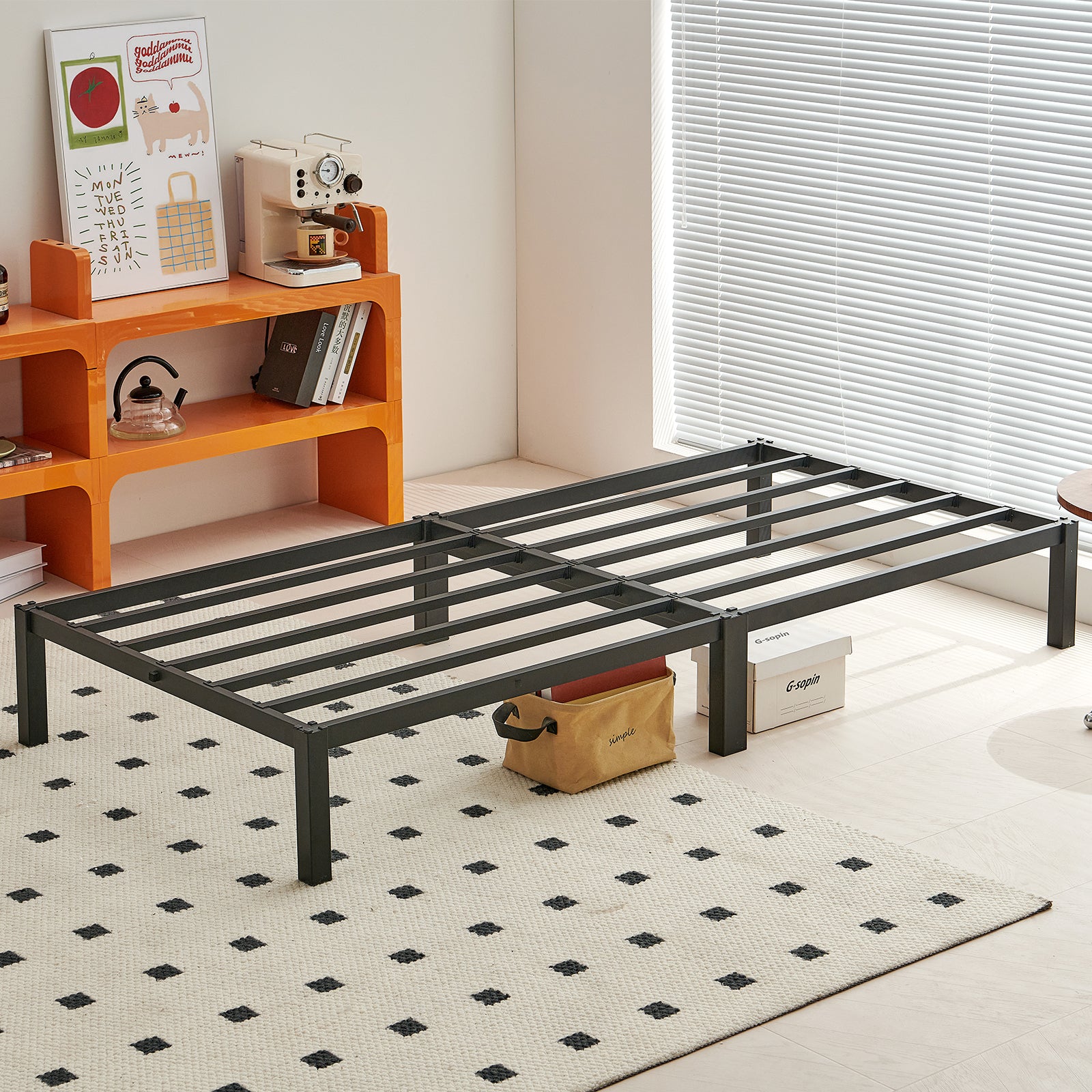 Ob im Schlafzimmer, Gästezimmer oder Schlafsaal aufgestellt, dieser kopflose Einzelbettrahmen aus Eisen kann seinen einzigartigen Charme entfalten und Ihrem Leben eine schlichte Schönheit verleihen.