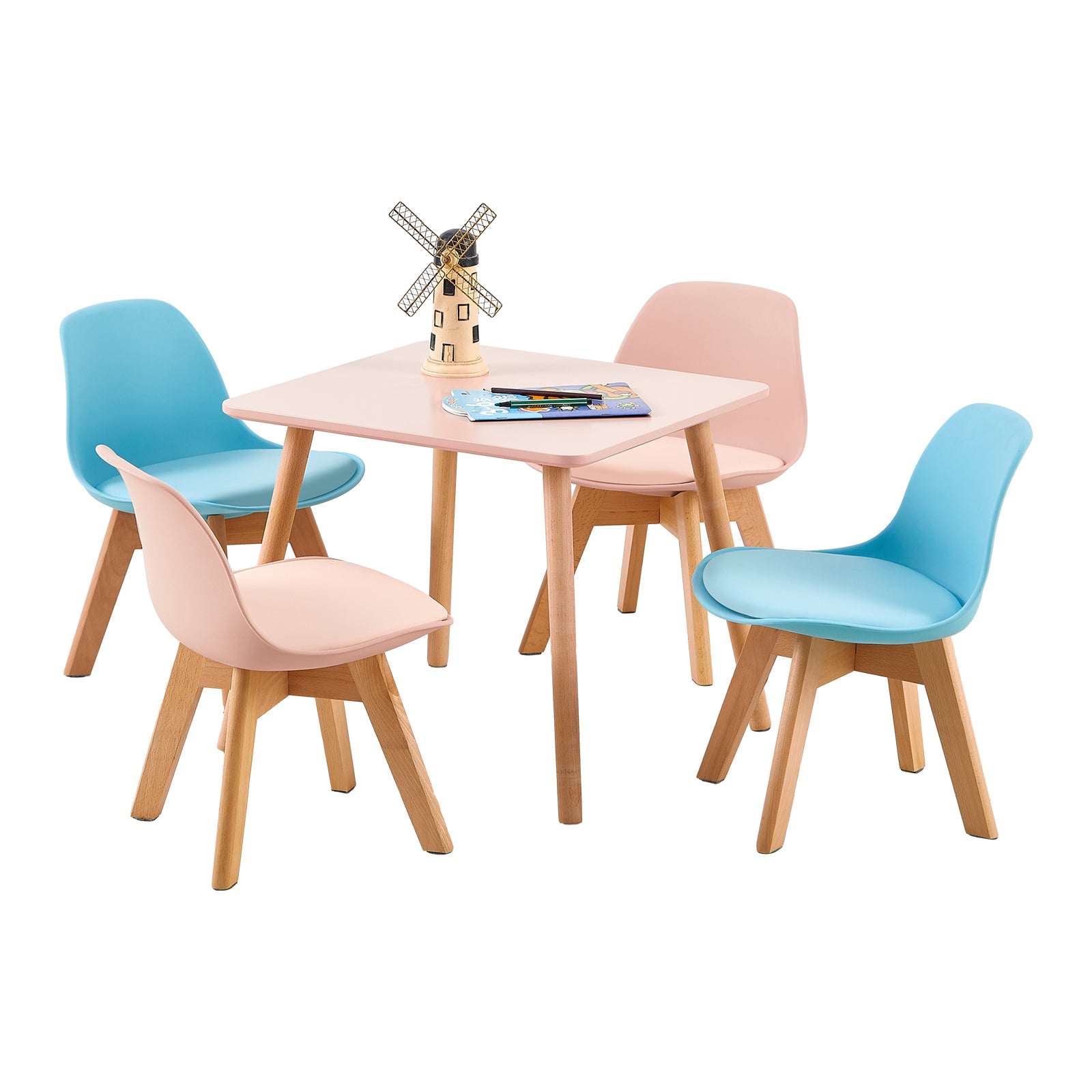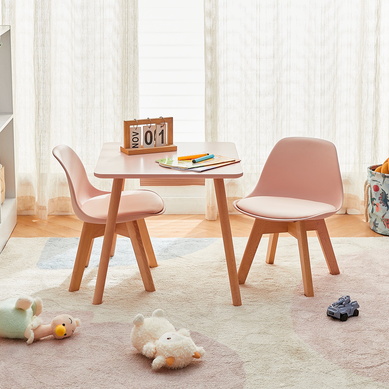 Dieses Tisch- und Stuhlset für Kinder besteht aus 2 niedlichen Stühlen und 1 stabilen Tisch und ist für Kinder im Alter von 3 bis 5 Jahren konzipiert. Der Tisch und die Stühle bestehen aus hochwertigen Buchenholzbeinen, die robust und langlebig sind und den Aktivitäten und Spielen der Kinder standhalten.