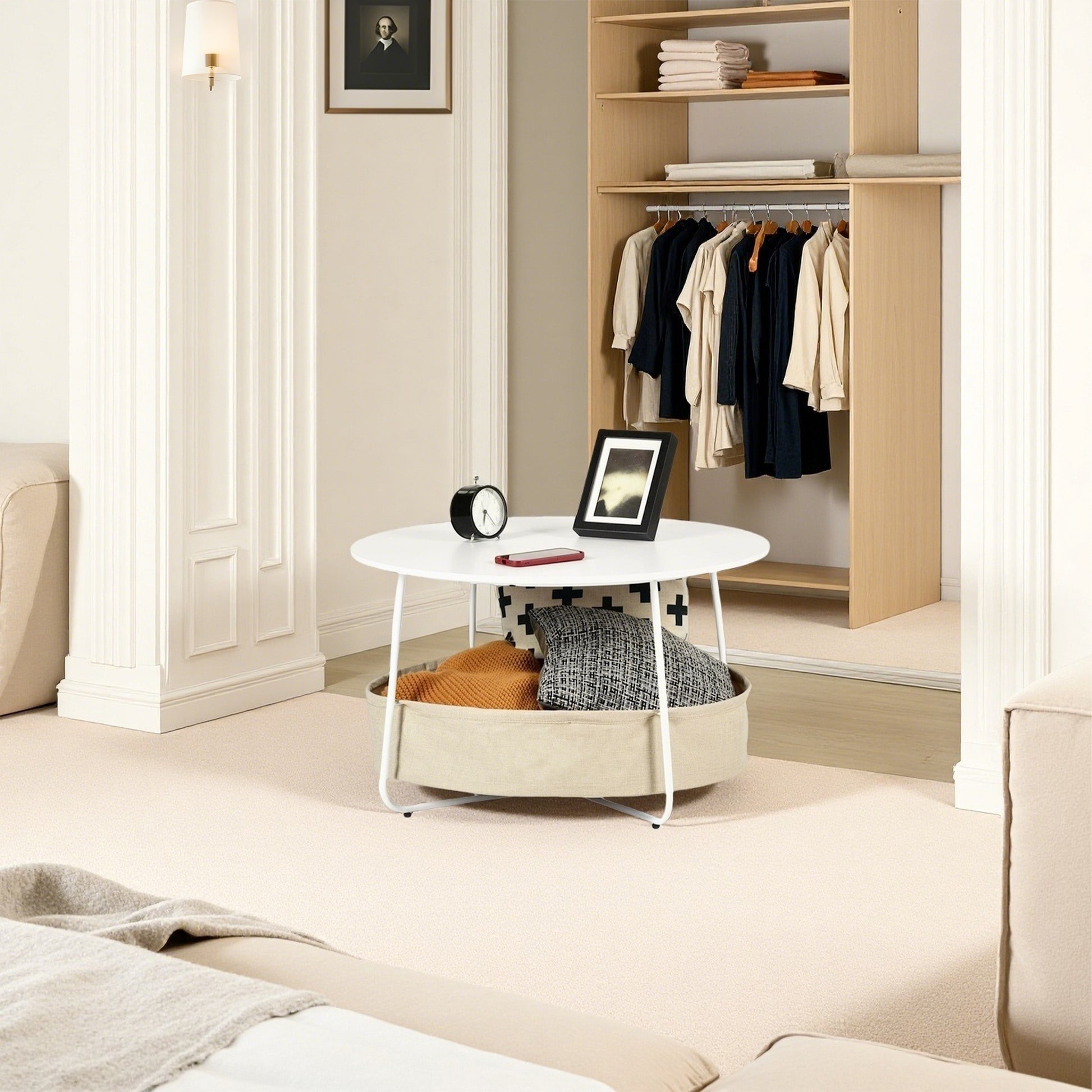 Der integrierte Stoffaufbewahrungskorb bietet eine ideale Lösung, um Ihren Raum organisiert zu halten. Nutzen Sie ihn, um Zeitschriften, Bücher, Fernbedienungen oder kleine Spielzeuge zu verstauen, sodass Ihre Tischplatte frei von Unordnung bleibt und Sie dennoch einfachen Zugriff auf Ihre Essentials haben.