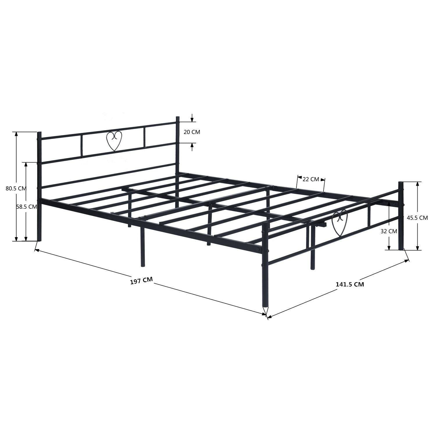 EGGREE schwarzes Metallbett mit Lattenrost bietet Ihnen Komfort im Schlafzimmer. Dieses ist geeignet für Kinder, Studenten, Jugendliche und Erwachsene mit einem Gewicht von bis zu 130 kg.