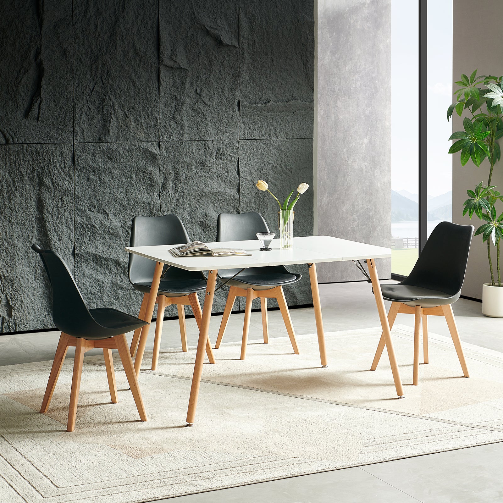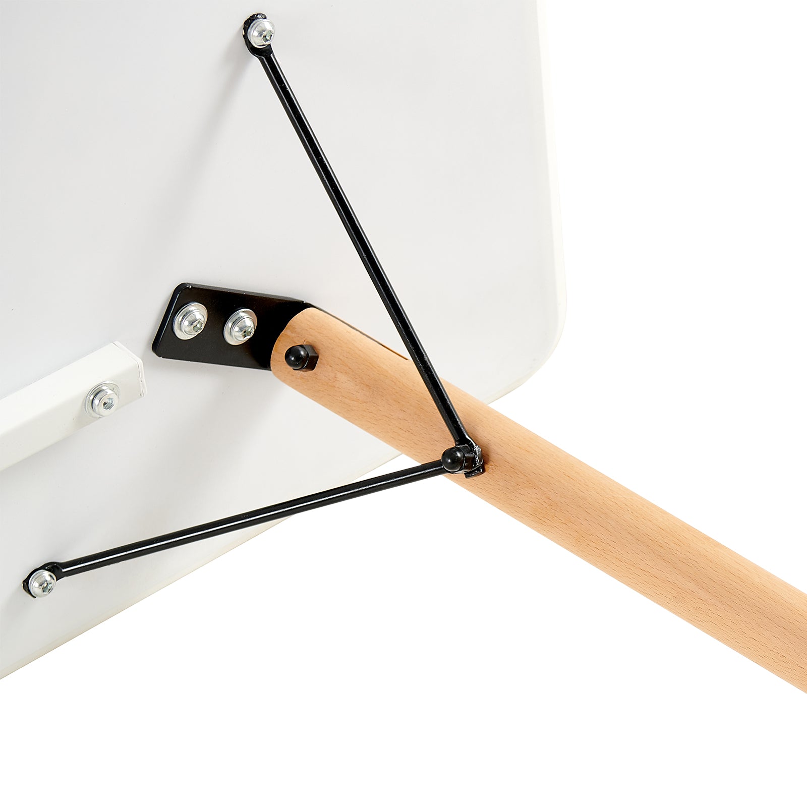 Die Tischplatte aus hochwertigem Buchenholz und MDF sorgt für eine robuste und langlebige Konstruktion.
