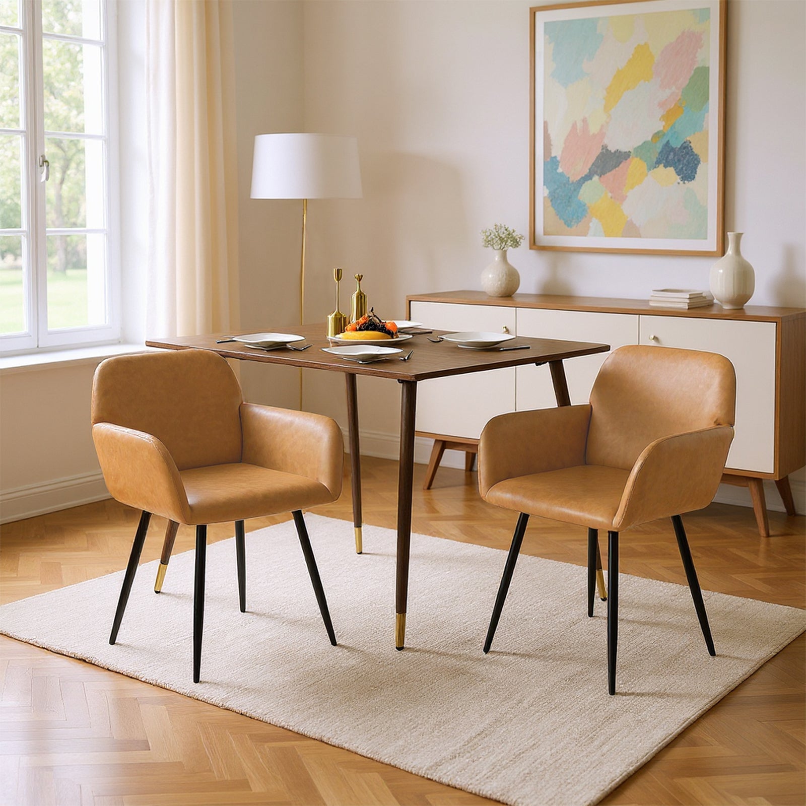 Verleihen Sie Ihrem Raum mit dem luxuriösen Esszimmerstuhl mit breiten Armlehnen aus PU-Leder ein elegantes Upgrade. Er besticht durch eine reichhaltige braune Oberflächenbehandlung und stabile Eisenbeine. Dieser Stuhl wurde entwickelt, um sowohl Eleganz als auch Komfort in Ihr Zuhause zu bringen. Der hochwertige PU-Lederbezug bietet eine glatte, leicht zu reinigende Oberfläche, während die hochdichte Schaumstoffpolsterung für ein bequemes, stützendes Sitzerlebnis sorgt. Ob Sie eine Mahlzeit genießen oder sich nach einem langen Tag entspannen, dieser Stuhl vereint Komfort und Stil.