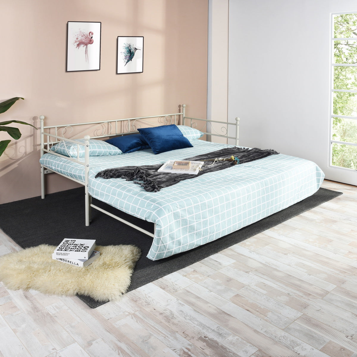 Zeitgenössisches Metallbett für Erwachsene – Schlafsofa + Einzelbett – Weiß: Maße aufgebaut: 190 x 177 x 95 cm (L x B x H). Stellen Sie sicher, dass Ihre Matratze diesen Maßen entspricht.