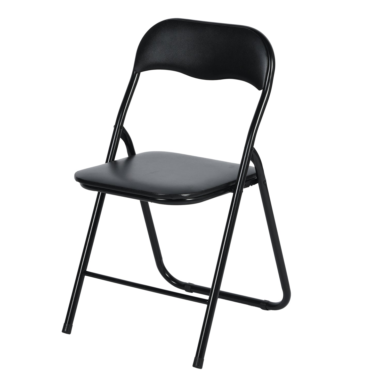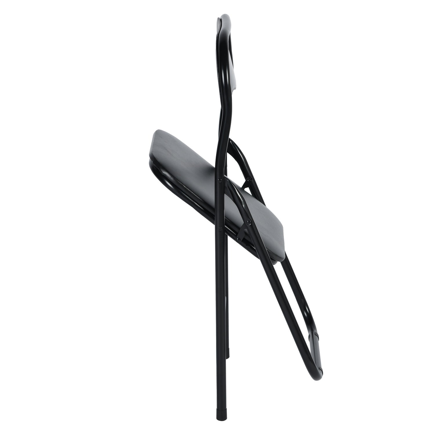 Der Klappstuhl ist für eine Tragfähigkeit von bis zu 350 Pfund ausgelegt und verfügt über einen stabilen Sitz und eine Rückenlehne aus geformtem Kunststoff sowie Querstreben und Beine aus Stahl.