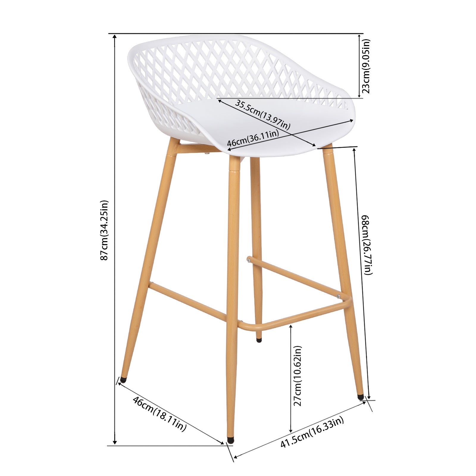 Sitzhöhe: 68 cm (ideal für Standard-Bar- oder Thekenhöhe). Der Stuhl ist so konzipiert, dass er in den meisten Umgebungen passt und gleichzeitig maximalen Komfort und Benutzerfreundlichkeit bietet.