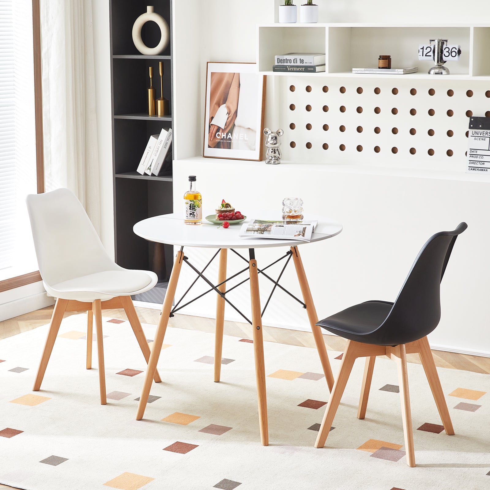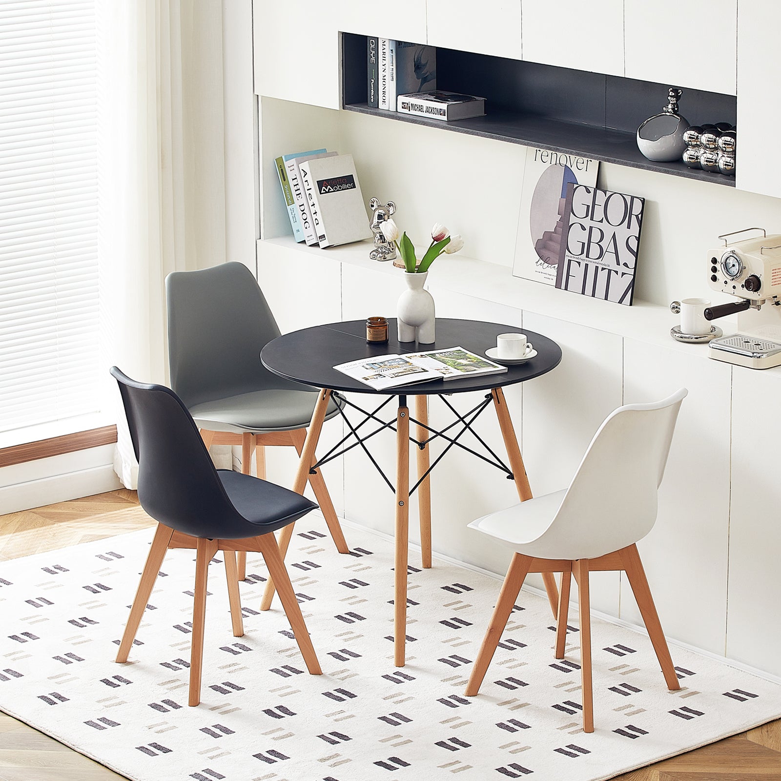 ⭐Runder Esstisch – Mit einem Durchmesser von 80 cm und einer Höhe von 74,5 cm ist dieser Tisch mit zwei Arbeitsplatten ausgestattet, um das bestmögliche Esszimmererlebnis zu gewährleisten. Die Tischplatte besteht aus hochwertigem MDF, mattschwarz lackiert.