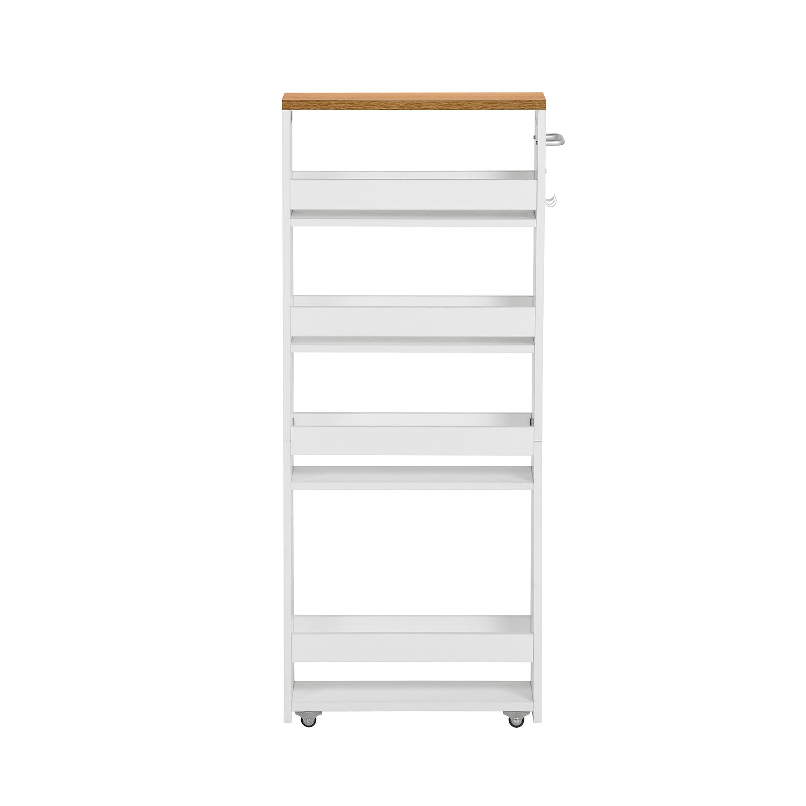 - Passt in enge Räume: Das schlanke Design eignet sich perfekt für die Platzierung zwischen Küchengeräten, z. B. zwischen Kühlschrank und Arbeitsfläche, oder in anderen engen Bereichen wie unter Tischen, Arbeitsplatten oder neben der Waschmaschine. Der Wagen ist mit einem Griff und vier robusten Rädern ausgestattet, sodass er sich leicht in engen Ecken manövrieren oder bei Bedarf in einen anderen Raum bewegen lässt.