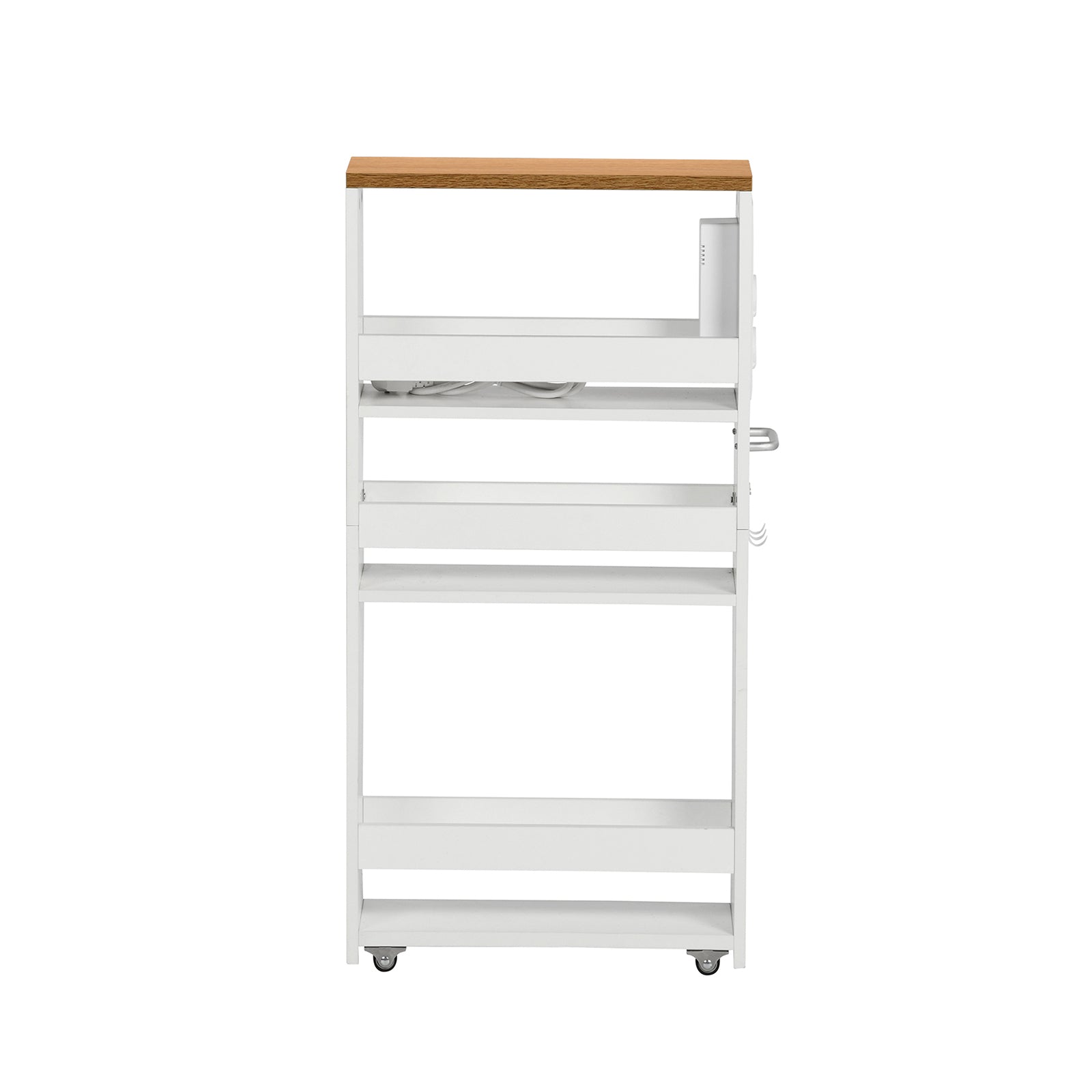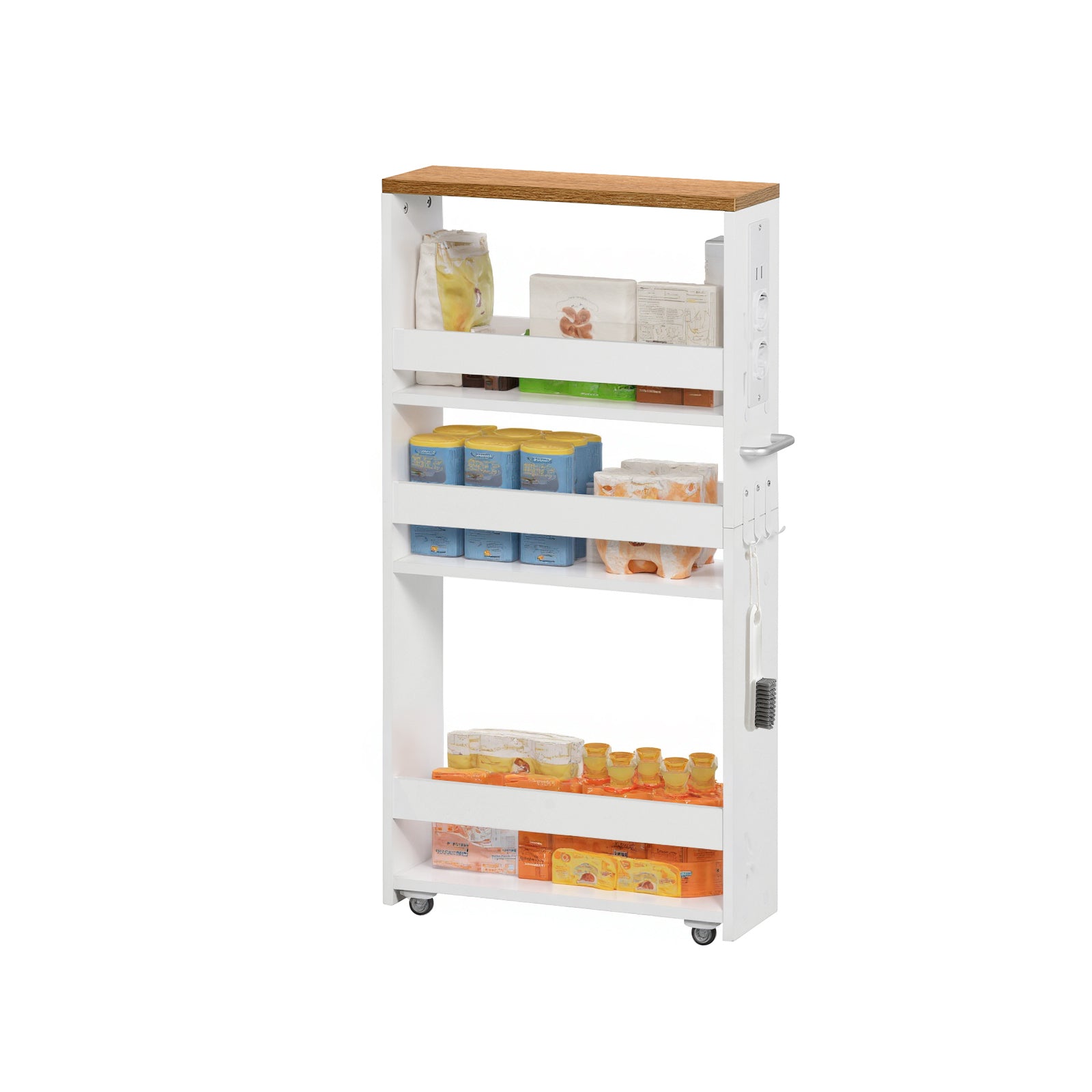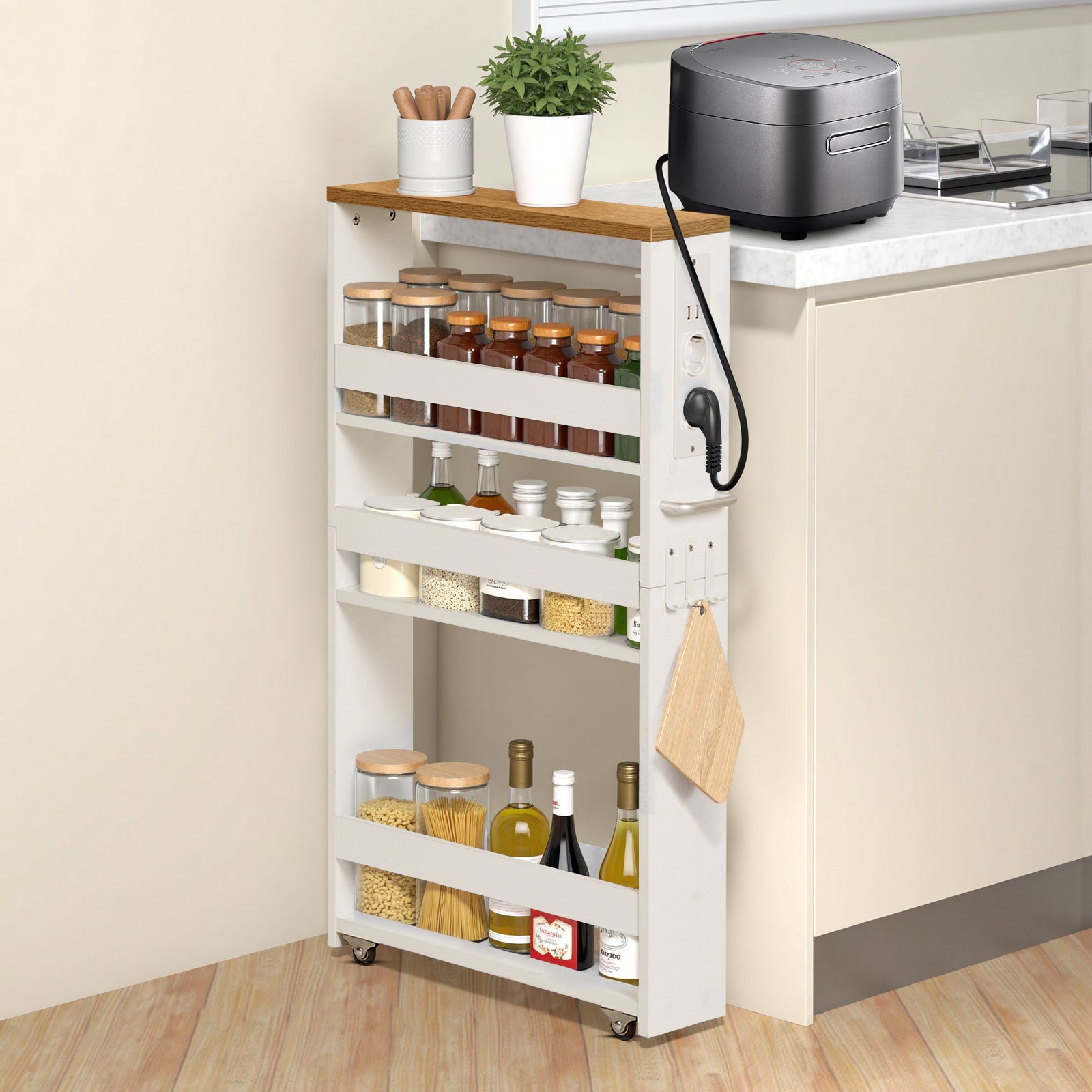 Dieser 4-stöckige Aufbewahrungswagen ist für enge Räume konzipiert und verwandelt Küchen, Bäder und andere kompakte Bereiche mühelos in übersichtliche und aufgeräumte Bereiche. Dank der vier drehbaren Rollen lässt er sich mühelos in jede Position bewegen, sodass Sie schnell auf Ihre Gegenstände zugreifen können. Die integrierte Steckdosenleiste sorgt für zusätzlichen Komfort. Er passt perfekt neben Küchenschränke, Kühlschränke oder in andere schmale Bereiche und nutzt so den verfügbaren Platz optimal aus.