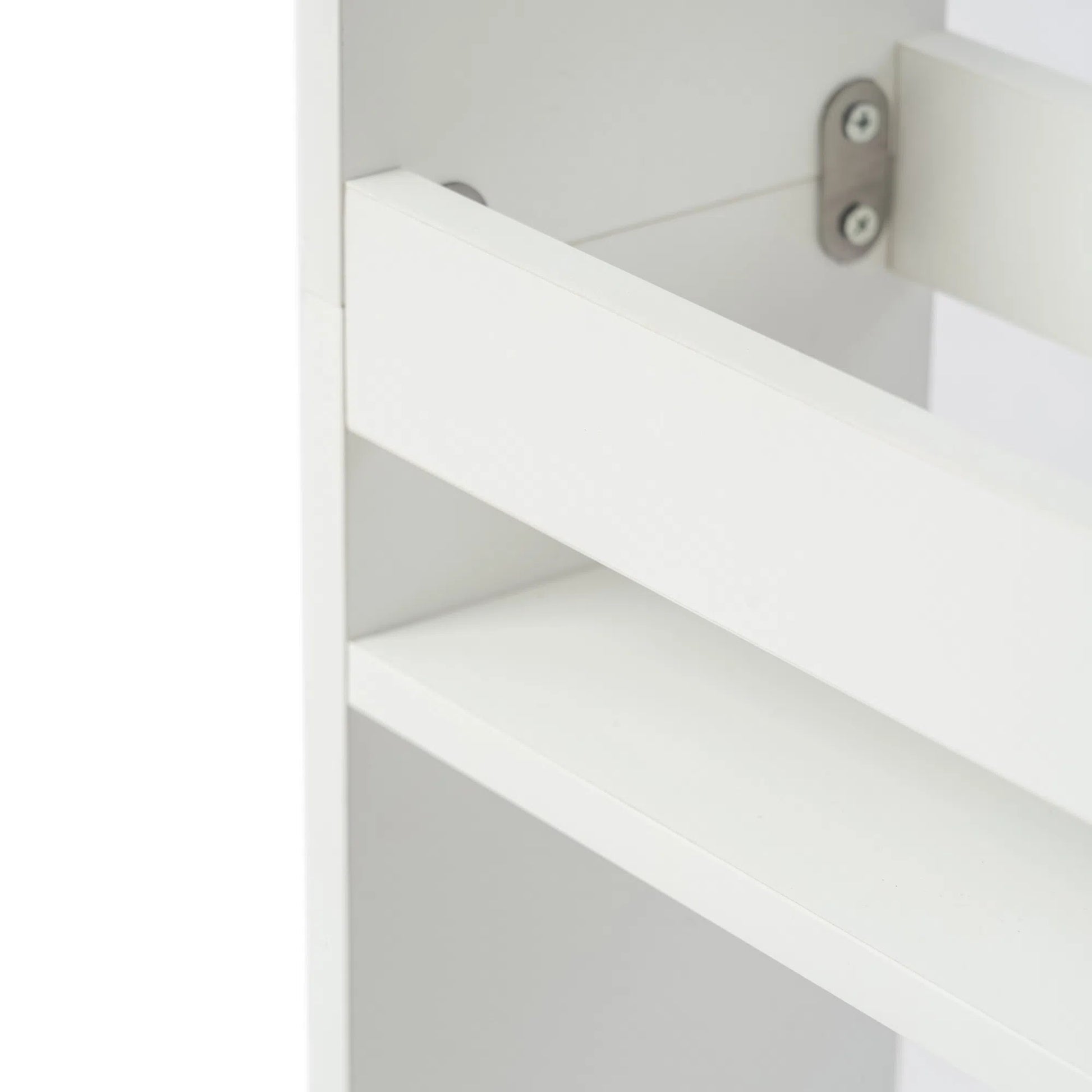 Design: Klassisch weiß, minimalistisch und dennoch stilvoll, fügt sich dieser Wagen nahtlos in verschiedene Einrichtungsstile ein, insbesondere in Küchen und Bädern. Er behält seine Schönheit über lange Zeit und sorgt für ein klares, modernes Aussehen.