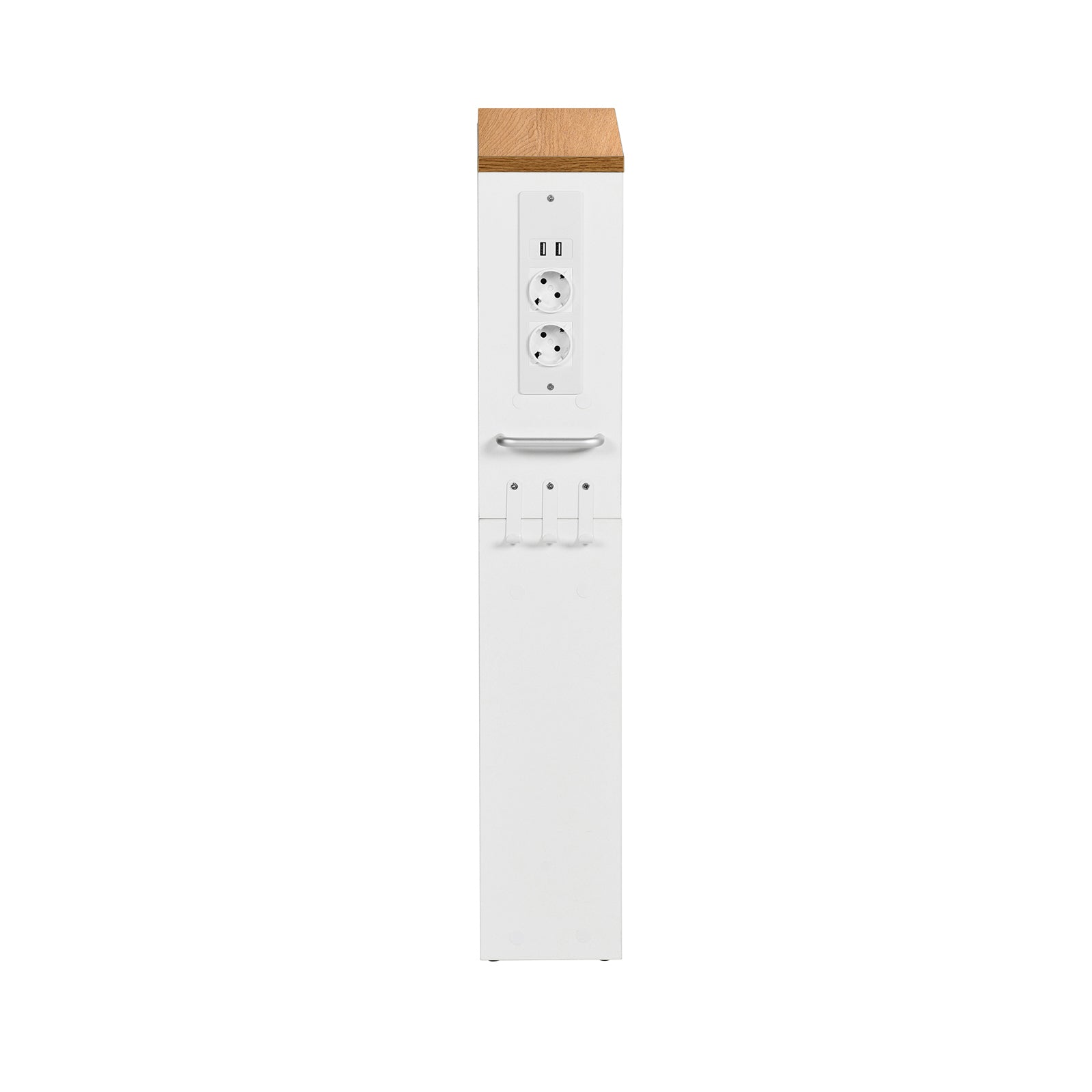 Integrierte Steckdosenleiste: Dank der integrierten Steckdosenleiste können Sie in Küchen und Badezimmern problemlos mehrere Geräte anschließen. Egal ob Wasserkocher, Mikrowelle oder andere Kleingeräte – Sie können sie problemlos anschließen, ohne lästige Kabelsalat. So bleibt Ihr Raum übersichtlich und ordentlich.