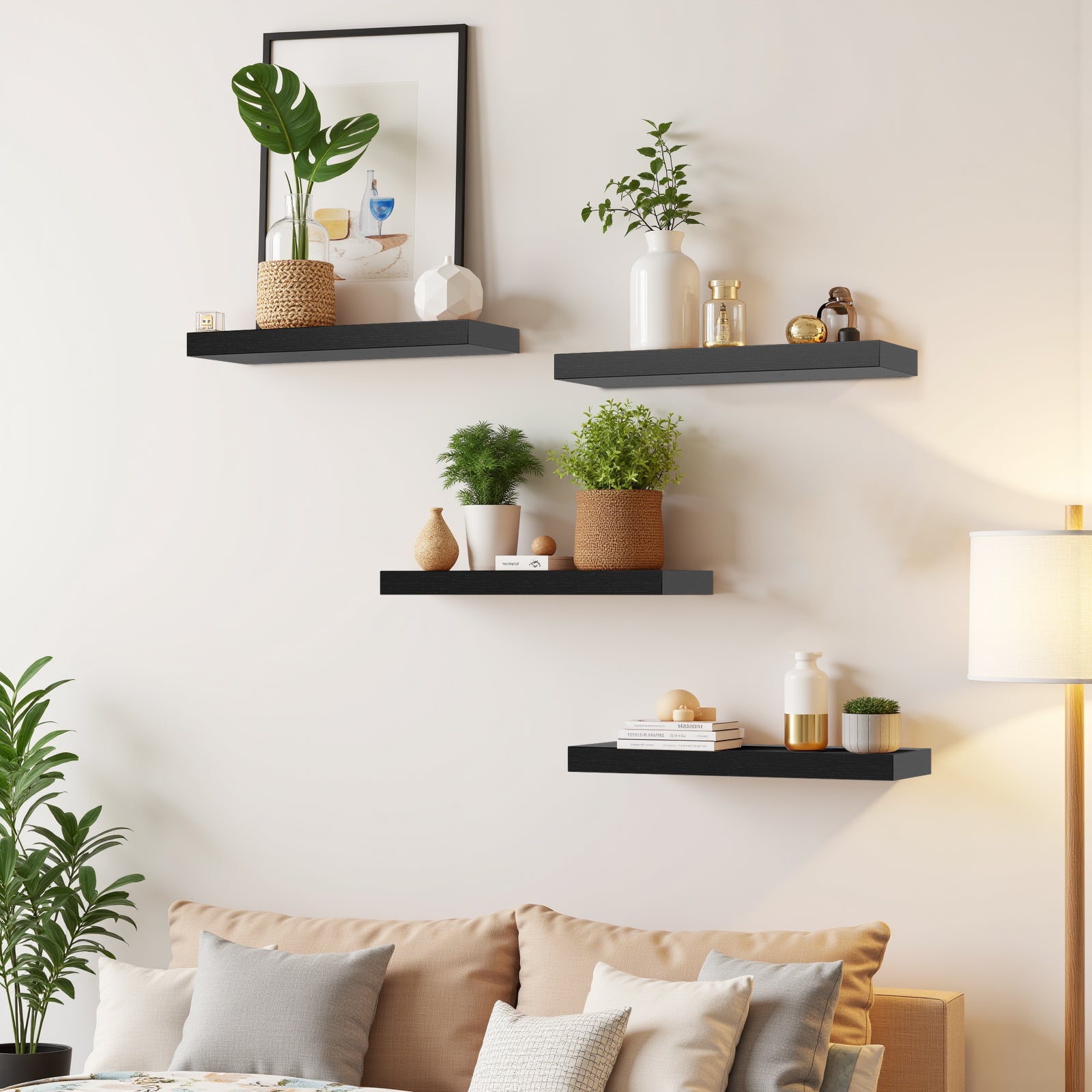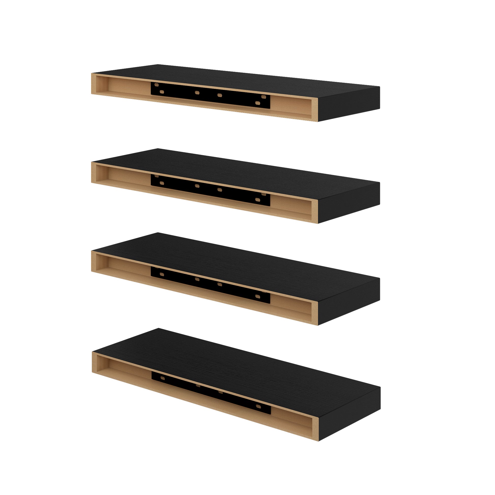 Die Wandregale bestehen aus hochwertiger modifizierter mitteldichter Faserplatte (MDF). Der Korpus wird karbonisiert und begast. Dadurch sind sie ungiftig und unbedenklich und zeichnen sich durch hervorragende Feuchtigkeits- und Wasserbeständigkeit sowie Formbeständigkeit aus. Dank der stabilen Metallhalterungen ist die Gesamtkonstruktion robust und langlebig und trägt Gewichte bis zu 10 Kilogramm. So wird Ihr täglicher Stauraumbedarf zu Hause optimal gedeckt. Ob Bücher, Bilderrahmen oder Küchenutensilien – alles findet problemlos Platz und sorgt für Ordnung und Ordnung in Ihrem Wohnraum.