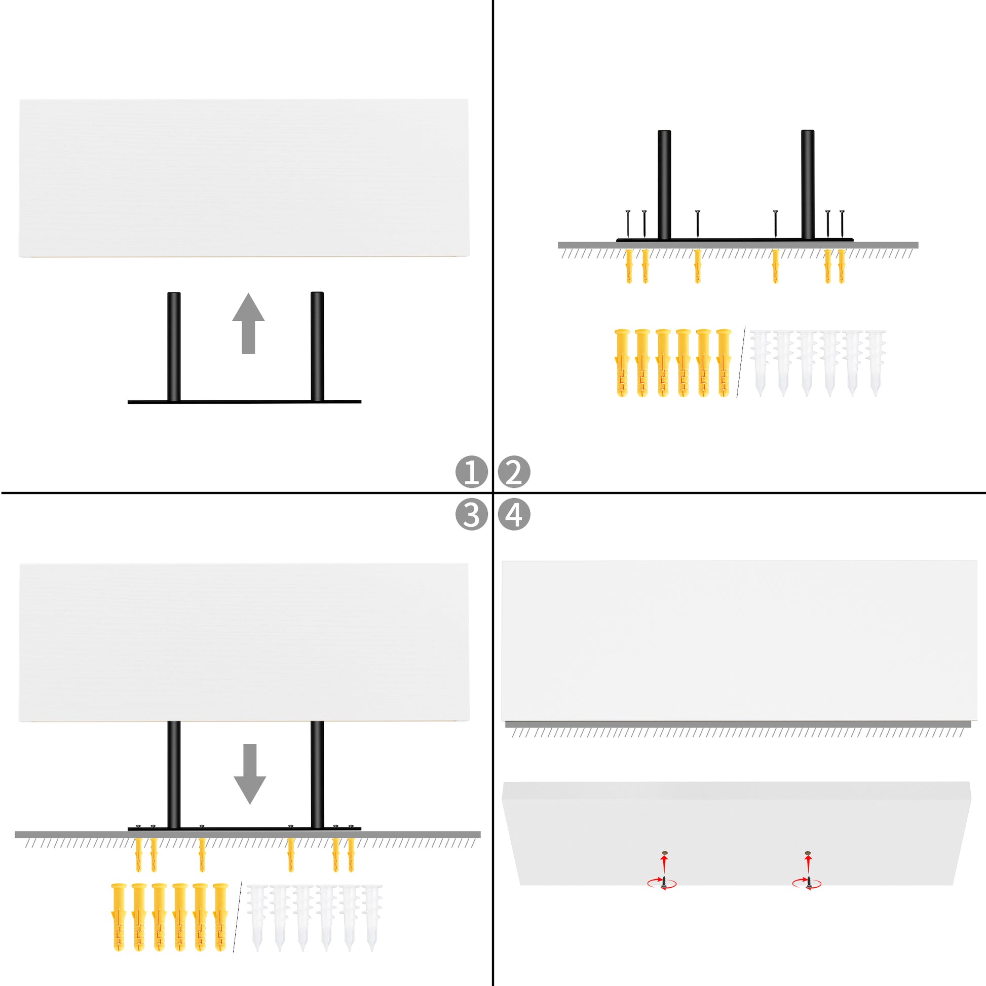 Die Wandregale werden mit dem gesamten notwendigen Montagezubehör geliefert, einschließlich deutlich gekennzeichneter Teile und ausführlicher Anleitungen. So ist die Montage selbst für Einsteiger in wenigen Minuten erledigt. Für eine präzise Montage empfiehlt sich die Verwendung einer Wasserwaage, um sicherzustellen, dass die Regale waagerecht hängen und optisch ansprechend aussehen.