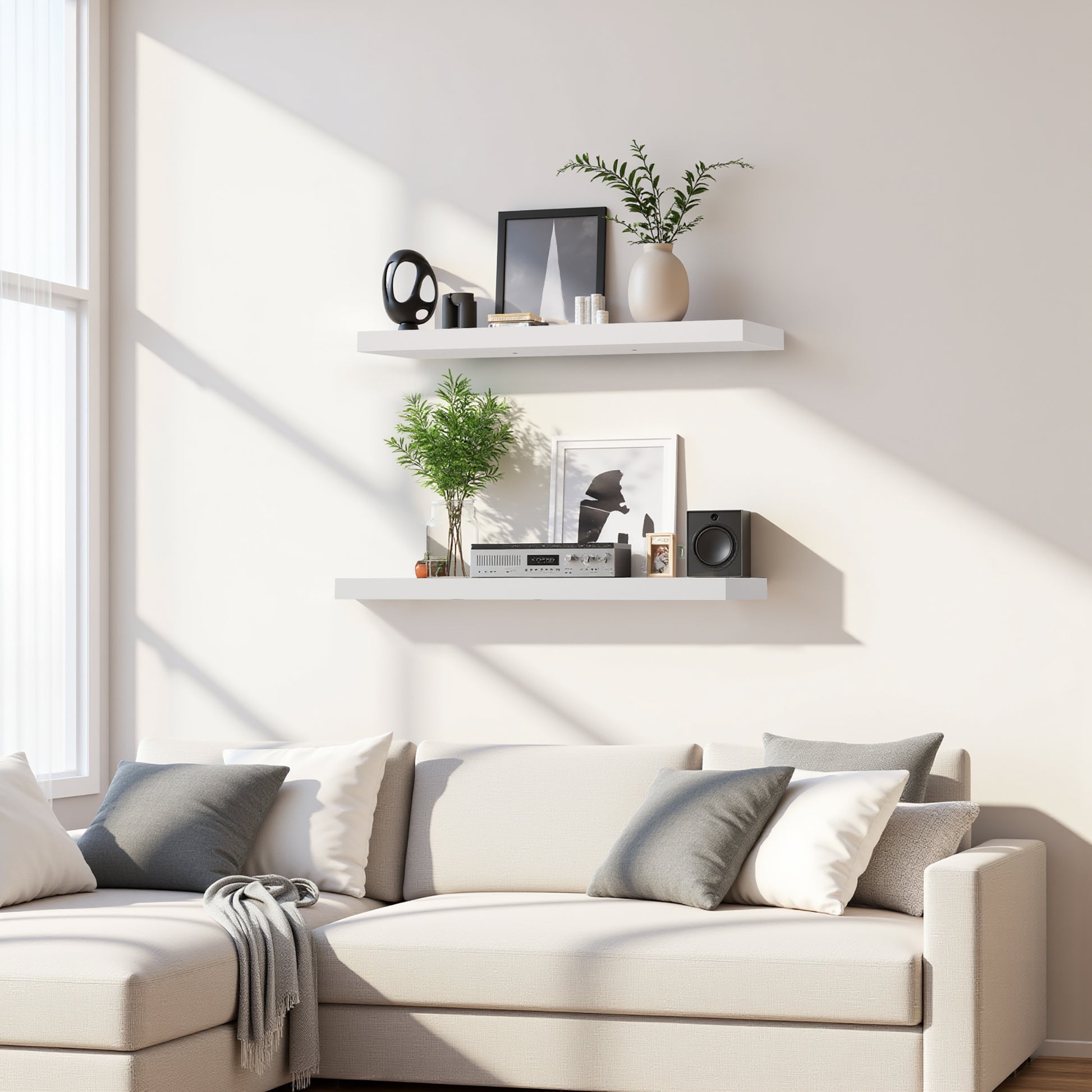 Das Design dieser Wandregale vereint Raumnutzung und Funktionalität. Mit einer Größe von 14 x 40 x 3 Zentimetern eignen sie sich sowohl zum Aufhängen als dekoratives Highlight als auch zur kombinierten Nutzung, um die Wandfläche optimal zu nutzen. Ob Bilderrahmen, Bücher, CDs oder Küchenutensilien – sie bieten Platz für alles und sorgen für mehr Ordnung in Ihrem Leben. Die elegante und glatte Oberflächenbeschichtung sieht nicht nur ästhetisch aus, sondern ist auch leicht zu reinigen und zu pflegen und sorgt so für langanhaltenden Glanz.